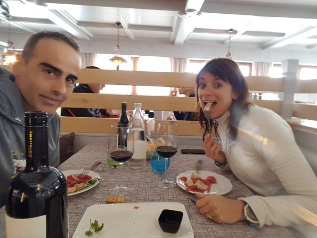 Ho letto i messaggi di tutti quelli che mi hanno pensato (tra gli altri grazie anche a 4 super triathleti che, nonostante siano nel pieno dei loro allenamenti da pro, hanno trovato un istante per farmi gli auguri), ho dormito fino a tardi, ho guardato la neve scendere dalla finestra della mia camera da letto, ho assaporato il profumo della montagna, ho scivolato sui miei sci con i miei scarponi nuovi (grazie amore) e ho brindato guardando negli occhi il vero triathleta del mio cuore: mio marito…