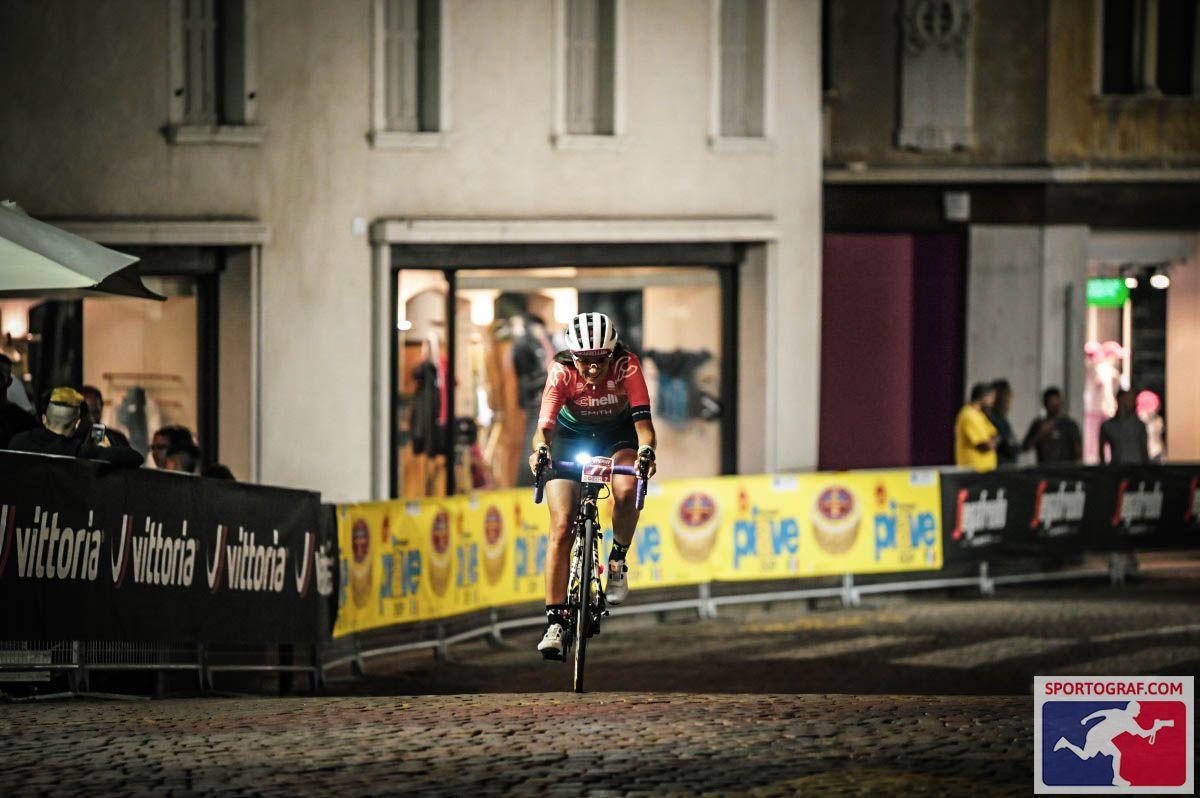 L’ansia si spezza tutta in un’istante, quando la gara parte e improvvisamente tocca a me. È calata la notte. Ho provato il percorso una volta sola. So che devo fare attenzione alle insidie del pavé, prendere la salita senza perdere il fiato e il passo, fare attenzione alla curva a sinistra, così secca che ci sono i materassi di protezione, e spingere come una pazza sul piano dove qualunque trenino è una manna dal cielo.