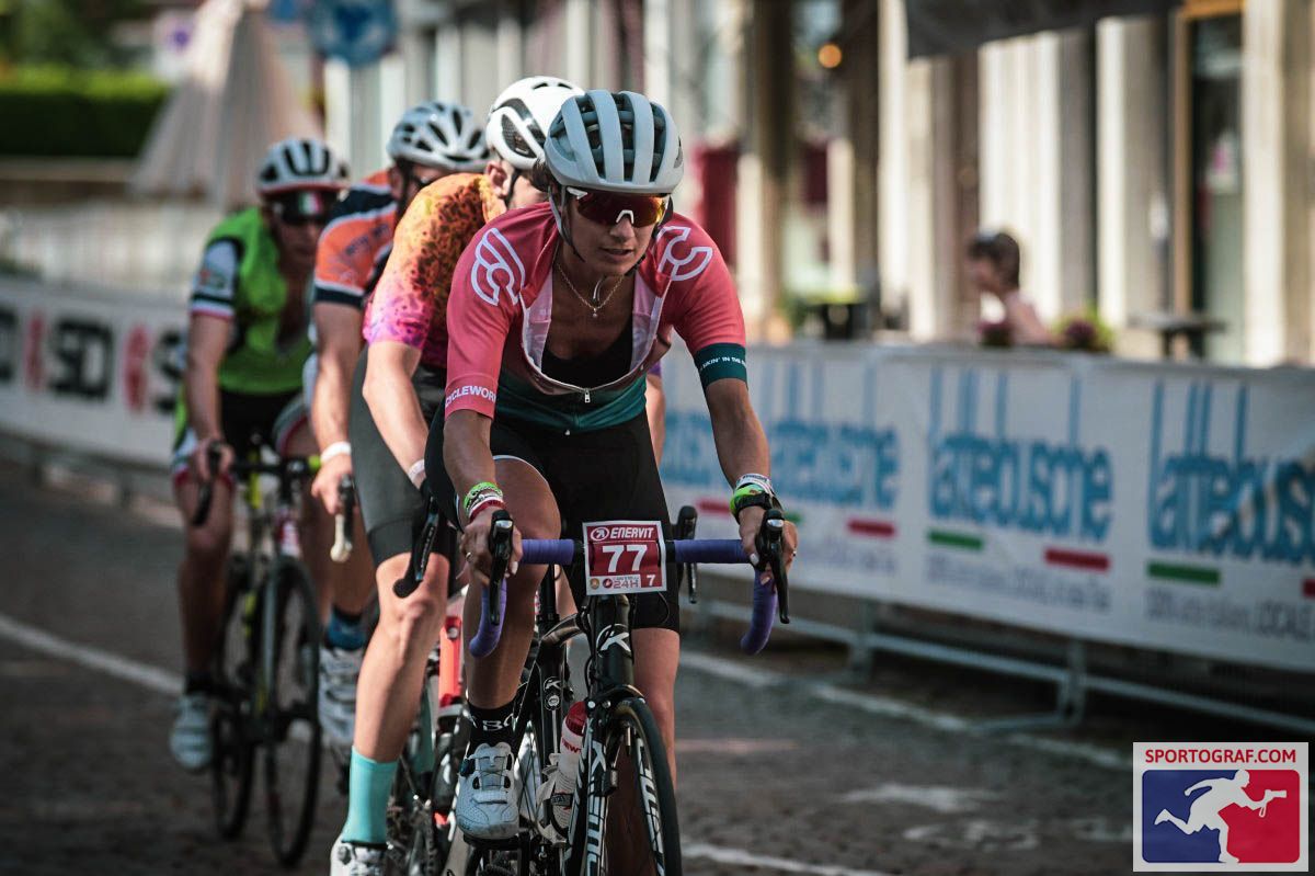 Aspetto Beatrice. Devo scorgere la nostra maglia, il suo braccio alzato all’ultimo giro e poi la sua pedalata da lontano. Eccola. Urla il mio nome mentre passa la finish line, è il momento in cui posso muovermi dalla zona cambio. Tocca a me. Comincia l’apnea.