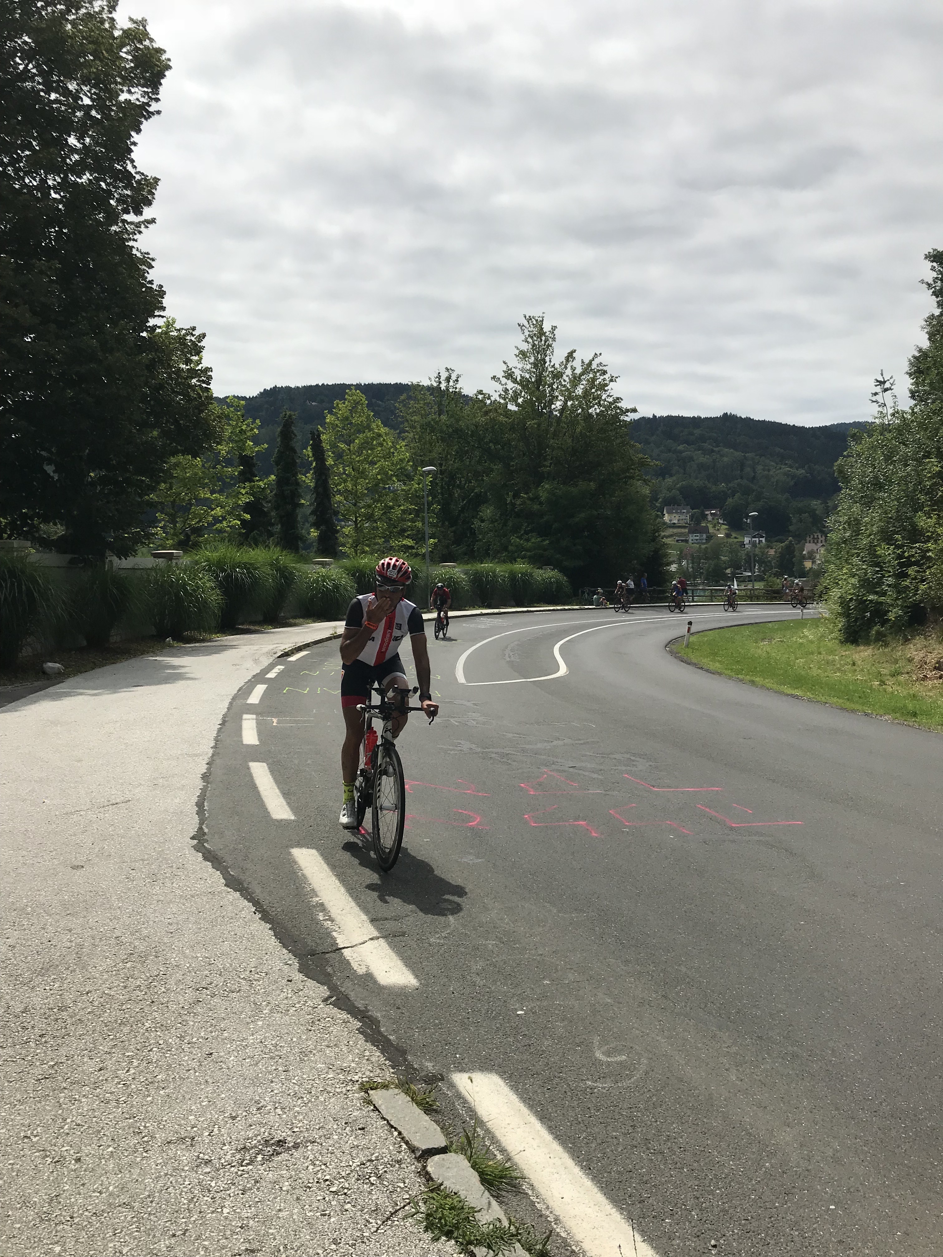 Simone: Sono tornato a Klagenfurt per la seconda volta dopo dieci anni che avevo corso la gara la prima volta. Avevo una bellissima e luccicante bici da crono con cui, però, ho impiegato lo stesso identico tempo di dieci anni prima, in cui avevo una bici la cui sola ruota posteriore pesava come tutta la crono comprensiva di borracce piene! Però dai… nel 2008 il percorso era di qualche km più corto!