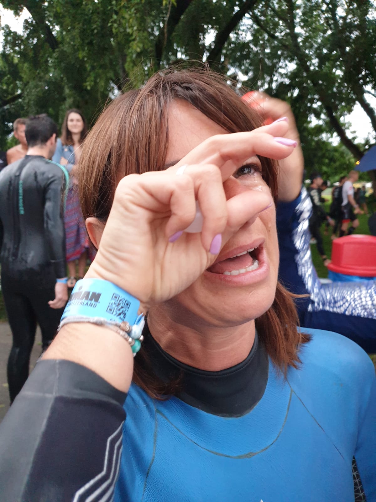 Ho paura. Non della lunga gara, non delle ore che mi aspettano di fatica, solo di quel lago scuro che mi guarda. Ho paura di essere stanca dopo pochi metri. Ho il terrore che il panico mi prenda la gola. Mi bagno e l’acqua è calda. Non c’è più tempo. Mi metto in fila e basta un attimo e mi trovo davanti la ragazza che spalanca le braccia per fermarmi e darmi il via per la partenza.