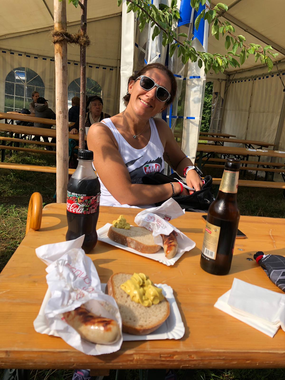 Sono seduta nel calore di questo solleone. Simo passerà di qui 3 volte, al 55km la prima volta. È pieno di gente sull’Heartbreak. Sembra il Tour de France. Gente coi campanacci. Persone che urlano, cantano, fischiano. Io non sono pronta. Nel senso che non mi ero preparata per un tifo così colorato.