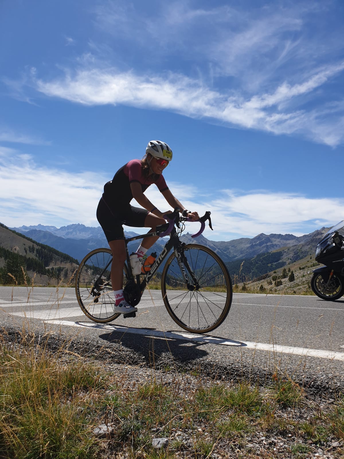 Sono partita da Guillestre, proprio dove c’è il cartello della salita dal lato sud. Mi sento una pro, oggi, ho l’ammiraglia che mi segue, con mio marito (e lui sì che ha fatto l’Embrunman vero, per la quinta volta) e i due bassotti. Tommy si agita e abbaia ogni volta che mi vede.