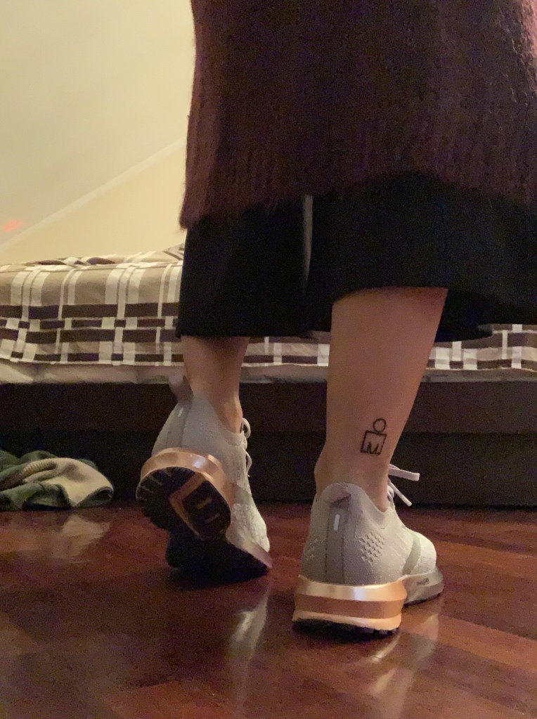 Non sono una da tatuaggi. Per anni non ho mai pensato che avrei inciso il mio corpo. Non mi interessava, non lo trovavo significativo. Ad un certo punto con un amico caro scherzavamo sul fatto che eravamo gli unici della nostra generazione che non erano tatuati. 3 anni fa ho cominciato a pensare che avrei voluto avere qualcosa di indelebile sulla pelle… mio marito e il nostro cagnolino più anziano, Dino. Ci ho messo un bel po’ a scegliere come raffigurarli e alla fine, appena operata alla spalla, in un momento un po’ buio, accompagnata da una delle mie più care amiche, ho disegnato su di me Simo e Dino.