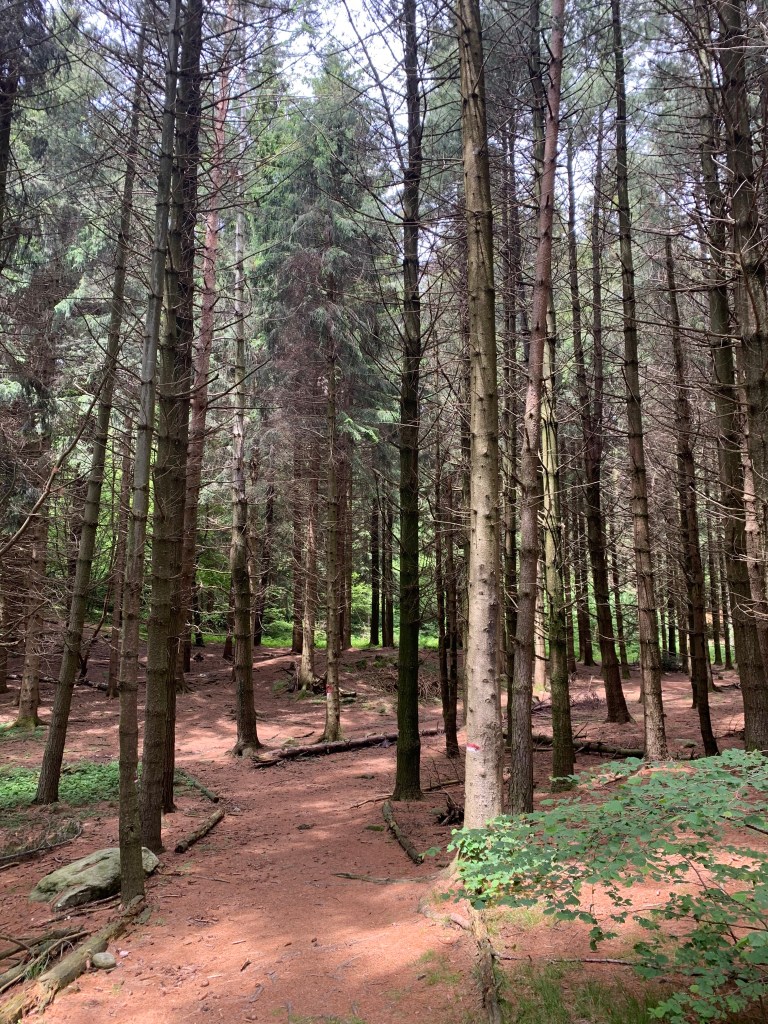 Ascolto battere piano sul fondo ghiaiato, e poi si ammutoliscono quando appoggio il piede prima sul terriccio e infine sul fondo di aghi di pino. Quando comincio a salire, e le grosse radici degli alberi spuntano dal terreno, rendendo alcuni passaggi un po’ insidiosi, devo fare attenzione a dove appoggio la suola.